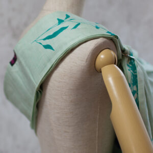 自然画をモチーフにしたフーレ・ペパーミントは、一枚の布を仕立てに合わせて染め上げることで、模様が常に美しい位置に配置されるように仕上げられています。手描きのナチュラルなデザインを友禅染めで表現した贅沢な技法は、一般的なプリントにはない深みと上質感を演出。ベージュベースの無地と柄の部分がバランスよく配置されることで、全体にすっきりと洗練された印象を与えます。