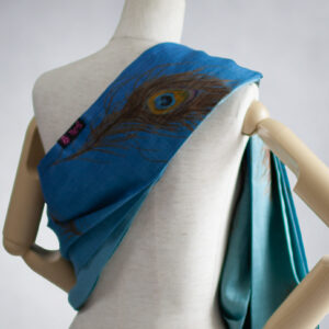グラデーションシリーズは、京都の工場で友禅染めによって染められています。卓越した職人による手染めは、着物の伝統技術を使った日本ならではのもの。一つのデザインを表現するためには、数多くの型を使い、時間をたっぷりと掛けていく必要があります。また、ピースリングの大判サイズの生地のために、高級着物の道具を改造し、専用の染め台を使い続けています。このように、スリング専用の凝った生地を使うのは、世界でもピースリングだけのこだわりです。