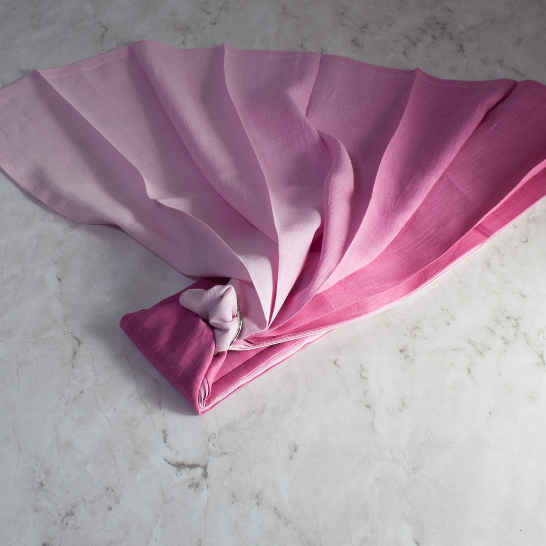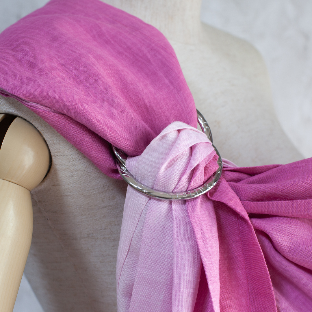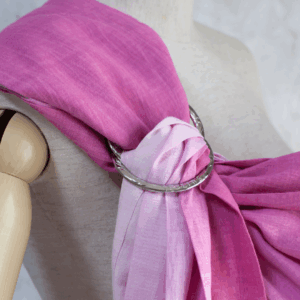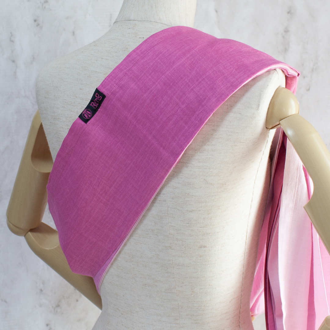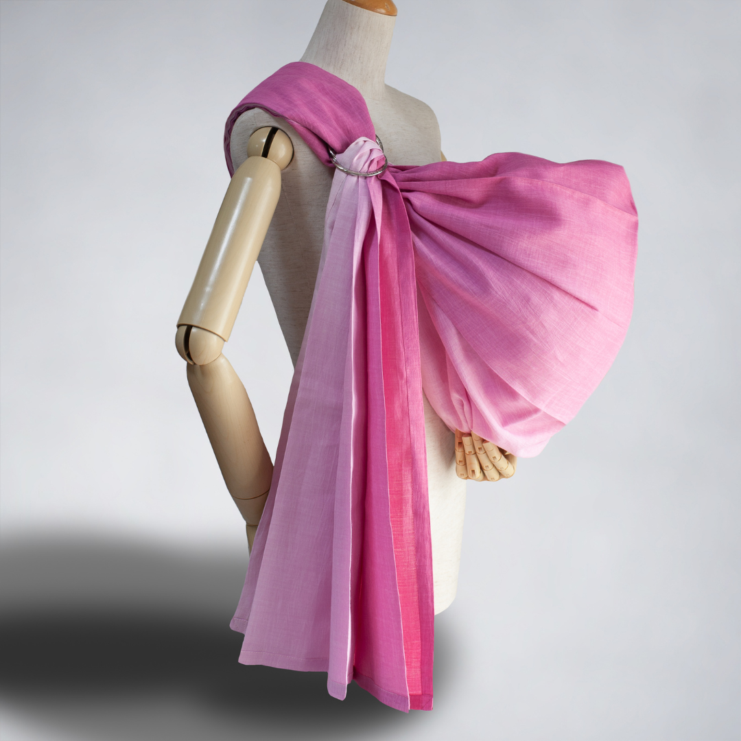 ピースリング・グラデーション・ベリーミルク。淡いピンクとミルクホワイトが美しく交差する、やさしい印象のベビースリング。