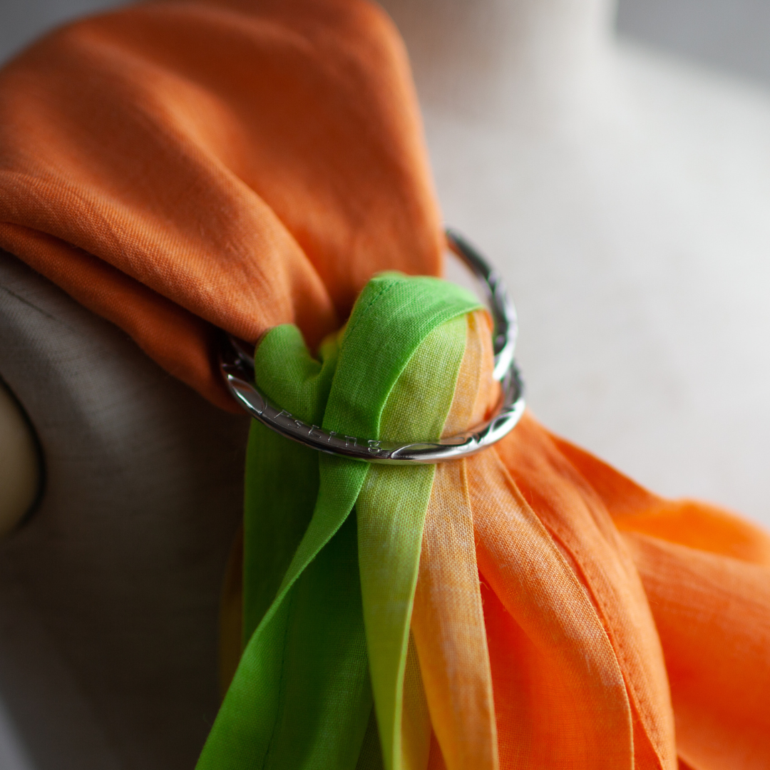 貴重なチタンを贅沢に使ったリングを、スリングにしてみませんか。 ステンレスに比べておよそ40%も軽量で、長時間の抱っこでも肩や腕への負担を軽減します。 また、金属アレルギーの方にも配慮した安心の素材で、強度と安全性も抜群です。