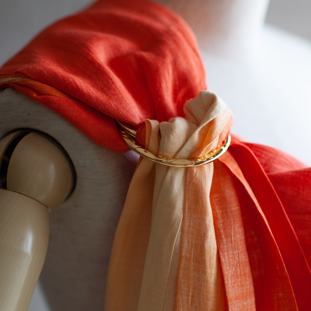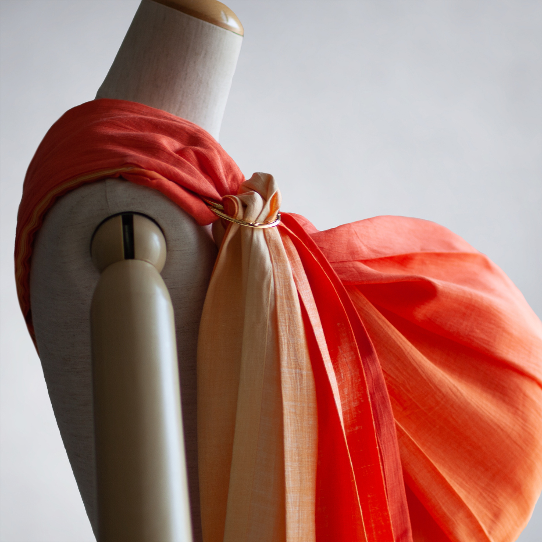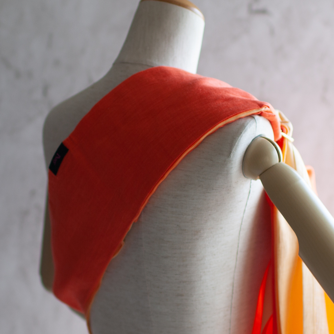 サンセットオレンジカラーのスリングを正面から着用したマネキンの写真