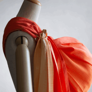 グラデーションシリーズは、京都の工場で友禅染めによって染められています。卓越した職人による手染めは、着物の伝統技術を使った日本ならではのもの。一つのデザインを表現するためには、数多くの型を使い、時間をたっぷりと掛けていく必要があります。また、ピースリングの大判サイズの生地のために、高級着物の道具を改造し、専用の染め台を使い続けています。このように、スリング専用の凝った生地を使うのは、世界でもピースリングだけのこだわりです。
