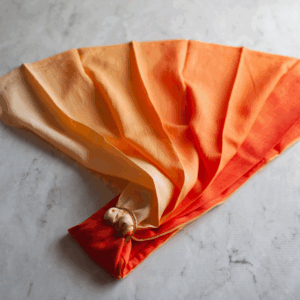 サンセットの名のとおり、夕陽が沈む空を思わせるような美しいオレンジのグラデーションが特徴の一枚。リネン特有のナチュラルな質感と相まって、派手すぎず、それでいて確かな存在感を放ちます。